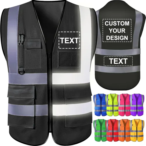 Material: fibra de poliéster de alta calidad. Duradero, ligero y cómodo. Transpirable y de secado rápido para mayor comodidad en ambientes cálidos. Chaleco de seguridad personalizado con tu propio logotipo de empresa / imagen de diseño, e introduce el texto. Tallas y colores: Chaleco de seguridad 8 tamaños: S, M, L, XL, 2XL, 3XL, 4XL, 5XL. ¡Puedes pedir 2-3 tallas más para un ajuste más holgado, por favor verifica la tabla de tallas para la talla correcta! Ofrecemos 7 colores diferentes para el chaleco de seguridad personalizado con Logo: rojo, amarillo, azul, naranja, negro, verde, dorado, rosa y morado. Bolsillos multifunción: Chaleco de seguridad personalizado con bolsillos y cremallera, cremallera resistente y suave, fácil de poner y quitar. Chaleco de seguridad personalizado con 5 bolsillos: puede contener llaves, teléfono celular, bolígrafos, cartera, herramientas y otros. Bien ordenado y fácil de recoger. Chaleco de alta visibilidad: Tiras reflectantes de dos pulgadas de ancho, muy llamativas y pueden reflejar las luces de los coches, las luces de la calle, etc. Perfecto para cualquier sitio de construcción/trabajo, trabajo en carreteras de autopista, fabricación y mucho más, manteniéndote visible, cómodo y seguro. Servicio y diseño: Si tiene alguna pregunta sobre el pedido o la personalización, póngase en contacto con nosotros, le responderemos lo antes posible. Si tienes algún requisito especial para el diseño, puedes decírnoslo, nuestro equipo de arte diseñará para ti.