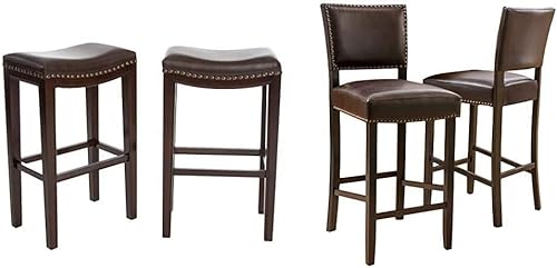 ¿Para qué sirve Christopher Knight Home Avondale - Taburetes de bar sin espalda, juego de 2 piezas, taburetes de bar con respaldo de cuero regenerado marrón?