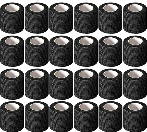 Cinta autoadhesiva: la cinta adhesiva claities está hecha de tela porosa de alta calidad y material no tejido, que es suave, transpirable y elástico. Y también tiene autoadhesivo, el vendaje cohesivo se adhiere solo a sí mismo, no pega tu piel o cabello, el vendaje es muy cómodo Tamaño de la envoltura autoadhesiva: cada rollo de envoltura veterinaria mide 2 pulgadas x 5 yardas. Viene con 24 rollos de cinta adhesiva cohesiva. Cantidad adecuada para su uso. Color: negro. La cinta atlética a granel es ampliamente utilizada tanto para humanos, mascotas como para tatuajes Autoadhesivo deportivo: nuestra cinta de primeros auxilios ayuda a reducir la hinchazón y el dolor de un esguince o asegura un vendaje para heridas en su lugar. La cinta de envoltura es perfecta para aplicar en todas las partes del cuerpo, como tobillo, rodilla y muñeca, etc. Confiada por tu médico Fácil de usar: el vendaje cohesivo es resistente al agua y no se afloja ni desenvuelve debido al sudor. Sin el uso de clips o cierres para mantenerlos juntos, la cinta adhesiva es elástica y autoadherente. La envoltura autoadhesiva se puede rasgar fácilmente sin tijeras para un gran uso fácil Cinta adhesiva para tatuajes: el vendaje adhesivo se puede envolver alrededor del mango de la máquina de tatuaje. Ayuda a evitar el deslizamiento del mango y crear obras de arte perfectas para tatuajes. Y el vendaje autoadhesivo se envuelve sin dejar ningún residuo pegajoso en los agarres o tubos de tatuajes, tampoco a otros materiales o piel