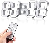 EPSKY - Reloj de pared digital 3D blanco con LED, reloj despertador grande, brillo ajustable, pantalla de 12/24 horas y fecha para cocina, hogar,