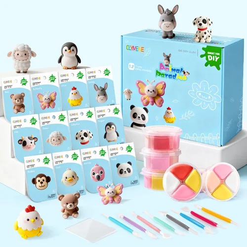 Kit de manualidades todo en uno: cada juego incluye 12 animales de arcilla predivididos con 4 colores vibrantes por animal, perfectamente organizados en recipientes redondos individuales. Los niños pueden mezclar, combinar y dar forma a la arcilla para dar vida a sus animales favoritos. Fácil de crear: con guías ilustradas paso a paso y herramientas fáciles de usar, los niños pueden rodar, apretar y esculpir la arcilla en adorables figuras de animales. Una forma divertida de despertar la creatividad mientras mejora las habilidades motoras finas y la coordinación mano-ojo. Seguro y apto para niños: hecho de arcilla suave, no pegajosa, no tóxica, segura para que las manos pequeñas jueguen. Totalmente probado y certificado para cumplir con las normas de seguridad ASTM D-4236, ASTM F963-23, CPSIA y EN71. No necesita hornear: esta arcilla ligera se seca al aire de forma natural, no requiere horno. Los niños pueden dejar que sus creaciones terminadas se endurezcan como recuerdos, o almacenar arcilla no utilizada en recipientes herméticos para jugar en el futuro. Idea de regalo perfecta: bellamente empaquetado, este kit de arcilla seca al aire es un maravilloso regalo para cumpleaños, vacaciones, premios en el aula o simplemente una actividad familiar creativa. Ideal para niños y niñas a partir de 3 años para disfrutar de la diversión imaginativa sin pantallas