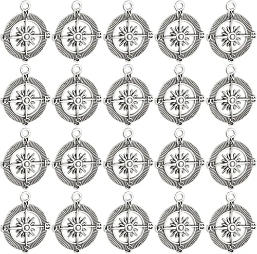 AUEAR, Colgantes de brújula, cuentas espaciadoras de aleación para pulseras, collares, joyería, manualidades, bricolaje