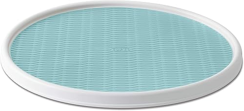 Copco 5234758 - Bandeja giratoria antideslizante para despensa, 2 niveles, 12 pulgadas, color blanco y azul aqua