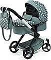 Bayer: Cochecito Xeo: Estrellas Verde y Blanco - Bolso a juego, asa ajustable, para muñecas de hasta 20", Edades 3+ | Muñecas bebé | Vestirse