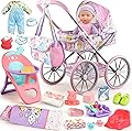 Juego de Cochecito de Muñeca para Niñas Pequeñas de 3-5, 4-6, 5-7 Años para Jugar a la Casita. Juguete de Cochecito con Muñeca de Bebé de 12.5",