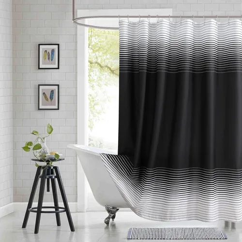 Alta calidad: hecha de tela de poliéster 100% de alta calidad, 130 GSM, muy suave y cómoda; la calidad premium promueve nuestra cortina de ducha de tela negra de larga duración Impresión HD: cuenta con sofisticadas rayas horizontales de color negro a blanco degradado con impresión digital HD resistente a la decoloración, nuestra cortina de ducha negra es perfecta para la decoración de baño de estilo moderno y contemporáneo Repelente al agua: impermeable y de secado rápido, nuestra cortina de ducha en blanco y negro puede evitar eficazmente que el agua salpique fuera del área de la ducha, manteniendo tu baño fresco y limpio Ojales resistentes al óxido: cada cortina de ducha negra tiene un cabezal reforzado con 12 ojales de metal resistentes al óxido para evitar desgarros; además, tiene un dobladillo pesado para mantenerla en su lugar durante el uso CUIDADO FÁCIL: Lavable a máquina en agua fría; Ciclo suave; No usar blanqueador; Secar en secadora a baja temperatura; Planchar a baja temperatura para mejores resultados; Esta cortina de ducha de rayas blancas y negras se adapta a bañeras/compartimentos de ducha estándar de 60-72 pulgadas