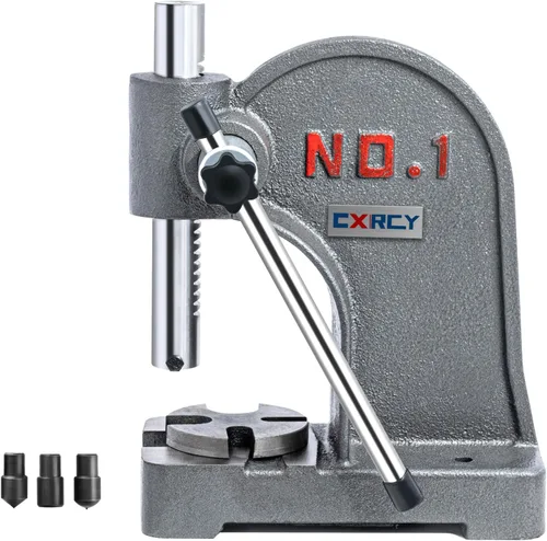 Prensa de eje de 1 tonelada: esta prensa de eje de alta calidad posee una capacidad de fuerza de presión de 1 tonelada, lo que significa que es capaz de ejercer hasta 2,000 libras de fuerza hacia abajo. Proporciona una altura máxima de trabajo de 5.5 pulgadas / 140 mm, permitiendo flexibilidad y versatilidad para todas tus necesidades. 【Construcción robusta y vástago redondo】- La prensa de cenador CXRCY de 1 tonelada está construida con hierro fundido de primera calidad, lo que hace que la prensa de cenador sea más duradera y resistente. El ariete redondo de la prensa de mandril manual está hecho de C45, ofreciendo un movimiento suave así como un uso sin esfuerzo. Nuestras prensas de arbor están bien empaquetadas y cubiertas de grasas para evitar la oxidación. 【Funcionamiento fácil y sin esfuerzo】- La prensa de árbol CXRCY de 1 tonelada está equipada con una palanca larga (10.4'') con mangas de goma antideslizantes para un funcionamiento fácil y ahorrador de mano de obra, mejorando la eficiencia de estampado. El diámetro del yunque es de 3.54 pulgadas/90mm. Esta placa de yunque de acero súper gruesa proporciona suficientes soportes de trabajo con 4 posiciones de ranura, que pueden satisfacer fácilmente tus diferentes necesidades. 【Resistente y versátil】- Nuestra prensa de árbol manual de 1 tonelada se puede asegurar a una base durante el uso, lo que proporciona más seguridad y estabilidad. La prensa de cenador de escritorio CXRCY viene con 3 accesorios de prensa de cenador, como deriva plana, deriva puntiaguda y deriva redonda, puedes elegir diferentes derivas para tareas más intensivas. Un gran regalo no solo para profesionales, sino también para principiantes. 【Múltiples usos】- La prensa de árbol CXRCY de 1 tonelada se puede aplicar ampliamente en ensamblaje de productos, mantenimiento y otros trabajos como estampado, doblado, extrusión, remachado, estiramiento, perforación, formado, estacado, instalación y remoción de rodamientos y otros trabajos de ajuste a presión.