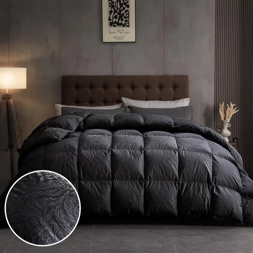 【Tela Ultra-Suave】- Estos edredones de plumas de ganso son magníficamente suaves, lisos y agradablemente pesados, la funda está hecha de 100% algodón, lo que los hace mucho más suaves y cómodos en la piel. Estos rellenos de edredón absorben la humedad, son transpirables y moderadamente cálidos, por lo que son adecuados para su uso en cualquier temporada. Son a prueba de plumón para que no haya ningún relleno molesto que te pinche y perturbe tu sueño. Relleno de plumas de alta calidad: nuestros rellenos de edredón de ganso están rellenos con 90% plumas de ganso y 10% plumón de ganso, que es de origen ético y ha pasado la certificación OEKO-Tex Standard 100. Los rellenos reciclables que usamos son cuidadosamente seleccionados y limpiados a fondo antes de ser colocados dentro de la funda. El material premium garantiza un edredón de alta limpieza, sin olor, bajo nivel de ruido y agradable al tacto. 【Diseño de cachemira】- Este edredón de plumas cuenta con un exquisito patrón de cachemira. El sutil brillo y la superficie texturizada detallada le dan un aspecto majestuoso. Es de naturaleza decorativa para combinar o contrastar con la combinación de colores de su dormitorio. Este acogedor edredón de plumas actualiza tu habitación dándole un aspecto vintage y lujoso y es una adición gloriosa a tu dormitorio. 【Esponjoso y cálido】- El edredón de plumas de ganso está diseñado con una construcción de caja. Con estas características, el relleno puede distribuirse uniformemente en su lugar adecuado y evita que el relleno se mueva. Siempre tienes un edredón suave y esponjoso que mantiene su forma. Los ribetes bonitos y las costuras de doble aguja evitan que se desprendan y mejoran la durabilidad. Este edredón se puede utilizar solo o como relleno de edredón. Las 8 pestañas en las esquinas son muy convenientes para fijar y anclar una funda de edredón. Edredón de plumas para todas las estaciones: lavar a máquina en ciclo suave con agua fría, secar en secadora a baja temperatura. Por lo general, no es necesario limpiar un edredón con frecuencia, para no hacer que el relleno sea menos efectivo. Limpia profesionalmente tu edredón solo cada pocos años. - El edredón está empaquetado en una bolsa al vacío, se recomienda extenderlo durante unas horas y dar palmaditas suavemente al edredón para expandirlo completamente o secar en la secadora durante 10 minutos a baja temperatura al primer uso.