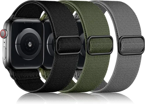 【Modelo compatible】Las correas deportivas de nailon elástico DaQin son compatibles con las bandas de Apple Watch para hombre de 46 mm, 45 mm, 44 mm, 42 mm, 41 mm, 40 mm, 38 mm, para Apple Watch Ultra/Ultra 2/Ultra 3 banda de 49 mm y iWatch SE/SE 2ª/SE 3 y Series 11, Series 10, Series 9, Series 8, Series 7, Series 6, Series 5, Series 4, Series 3, Series 2, Series 1, para iWatch Edition. Funciona con todas las versiones de Apple Watch. Nota: No incluye reloj 【Material de nailon suave de alta calidad】Las 3 bandas trenzadas elásticas DaQin para iWatch para hombres y mujeres están hechas de materiales de nailon elástico suave y agradable al tacto, evitan la irritación de la piel; las bandas de bucle suave son duraderas, transpirables, ligeras, sin olor, no se decoloran, se secan rápido y son fáciles de limpiar. Funciona para todos los entrenamientos diarios y la vida cotidiana, te ofrece una nueva experiencia de uso 【Elasticidad y tamaño ajustable】Correas de bucle de nylon deportivo DaQin para banda de reloj Apple de 44mm con fuerte elástico extensible, mantiene tu reloj cómodamente en tu muñeca, no frota en la muñeca, fácil de poner y quitar. Las bandas elásticas cuentan con una elegante hebilla de acero inoxidable, te permite ajustar fácilmente el tamaño del bucle como desees, resuelve el problema de tamaño perfectamente. Adecuado para tamaño de muñeca de 4.5-9.5 pulgadas 【Seguridad y fácil de instalar】Las correas de nylon duradero DaQin para Apple Watch SE vienen con orejetas de reloj en ambos extremos, que se enganchan en la interfaz del reloj de forma precisa y segura. Puede evitar eficazmente que las bandas de nailon se caigan y se aflojen. No necesita herramientas, instalación fácil y directa y extracción con un botón 【Paquete de 3 unidades incluido】3 paquetes de bandas de nailon elástico DaQin para Apple Watch están disponibles en diferentes colores populares, personaliza tu reloj inteligente para que se adapte a tu estado de ánimo, atuendo en la vida diaria y destaque tu gusto único. Será tu elección perfecta para tu pareja, familia y amigos, adecuado para regalos de cumpleaños, bodas, Navidad, Día de Acción de Gracias, Día de San Valentín o aniversario