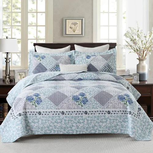 DDUOXIN Colcha floral de granja tamaño King, edredón reversible de retazos 100% algodón con 2 fundas de almohada, juego de colcha ligera a cuadros