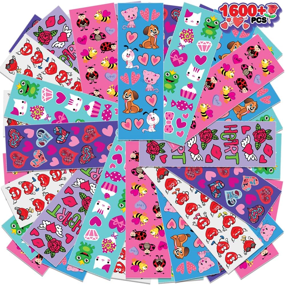 ArtCreativity 1600 calcomanías de San Valentín para niños, con 100 hojas de calcomanías, calcomanías navideñas y surtido de golosinas, recuerdos de