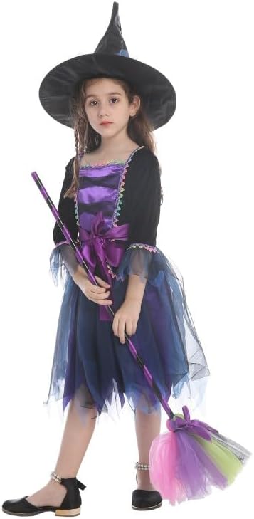 Disfraz de bruja infantil para niñas, disfraz de bruja de Halloween con sombrero, fiesta de disfraces