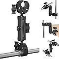 Soporte de doble abrazadera con brazo mágico de 360°, abrazadera de paraguas para silla soporte de cochecito para soporte de luz, monitor,