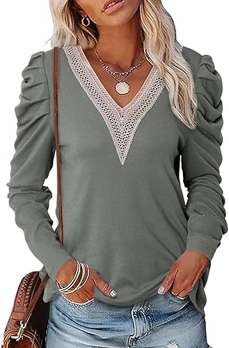 ¿Para qué sirve Dokotoo Blusas y blusas sueltas de manga larga abombadas con cuello en V para mujer?