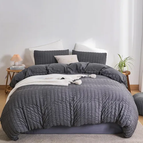 DuShow - Juego de funda de edredón con lino ultra suave, sirsaca, cierre de cremallera y color liso y 3 piezas con seersucker