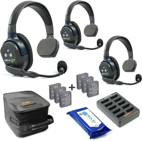 Eartec UL3S Ultralite Full Duplex Wireless Headset Comunicación para 3 usuarios – 3 auriculares de un solo oído con tres (3) baterías adicionales y