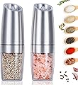 EasyCom Gravity - Molinillo de sal y pimienta, funciona con pilas con luz LED, grosor ajustable, molinillo de pimienta automático con una mano para