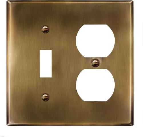 | Nombre Tipo Artículo | ENERLITES - Placa combinada de pared de acero inoxidable para interruptor de palanca y receptáculo dúplex, resistente a la corrosión, tamaño estándar de 2 segmentos, 4.50 x 4.57 pulgadas, acero inoxidable 201, 771121-AB, latón antiguo |