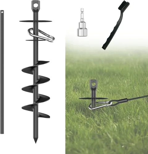 Construcción resistente: Este anclaje resistente para perros es perfecto para salir con tu perro, una forma sin manos de mantenerlos en un lugar seguro, libertad para ti y tu perro Anillo giratorio de 360°: El anillo giratorio de 360° está hecho de acero inoxidable 6mm 304 con un diámetro, el husillo está hecho de acero de aleación de 12mm, y la cuchilla en espiral está hecha como un todo, lo que puede resistir que el perro fuerte tire y se caiga. Material de alta resistencia: La estaca para tienda mide 14.96 pulgadas de largo, con una lámina de metal multicapa de 5 mm de diámetro. En comparación con otras estacas para tiendas del mercado, tiene un área de cobertura más amplia y puede fijarse en el suelo y proporcionar una excepcional fuerza de sujeción mediante múltiples láminas de metal en forma de regla Fácil instalación: cada juego incluye una herramienta de instalación de varilla de hierro, por lo que es fácil conducir la estaca en el suelo de forma segura. Con el diseño en forma de sacacorchos, esta estaca de toldo puede penetrar mejor en el suelo Uso versátil: ya sea que estés acampando en la naturaleza salvaje, instalando un toldo para un evento al aire libre o asegurando refugios temporales, estas estacas para tienda de campaña proporcionan la estabilidad que necesitas El paquete incluye: 1 ancla de tierra de metal de alta calidad, 1 varilla de metal, 1 gancho negro, 1 destornillador de tuercas, 1 cepillo y un manual de instrucciones detallado