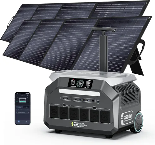 Estación de energía portátil IEE P3200 de 3200 W con panel solar de 2 x 200 W, generador solar de 2048 Wh, carga de CA de 1800 W, 4 salidas de CA,