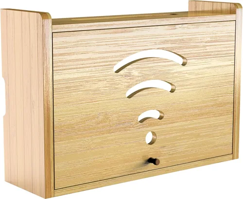 ¿Para qué sirve Estante de bambú WiFi Box Hider - Gabinete organizador de almacenamiento para módem - Montaje en pared - Pre-montado (bambú)?