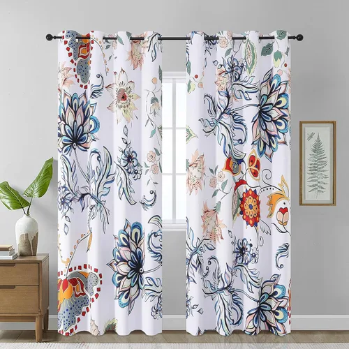 El paquete contiene: este juego incluye 2 paneles de cortina opacas bellamente elaborados, cada uno mide 52 pulgadas de ancho por 84 pulgadas de largo. Diseñado para facilitar la instalación, cada panel cuenta con 8 arandelas de metal resistentes con un diámetro interior de 1.6 pulgadas para acomodar una variedad de barras de cortina. Estas cortinas están hechas con tela de poliéster de alta calidad y tecnología opaca avanzada. Perfecto para crear un ambiente sereno mientras añade un toque artístico a cualquier espacio vital. DISEÑO Y ESTILO: Con flores florecientes como núcleo de inspiración, esta cortina adopta un diseño de patrón clásico y elegante, con líneas delicadas como pinceladas y un esquema de color brillante y elegante. Los tótems entrelazados de hojas y pétalos parecen solidificar el esplendor del jardín de primavera en la tela, creando un ritmo visual suave y natural e inyectando moda en el espacio con trazos artísticos. Privacidad y oscurecimiento de la habitación: estas cortinas bohemias crean un espacio seguro y privado para tu hogar. Bloquean el 70-75% de la luz solar y reducen el ruido, asegurando una privacidad total. Ideal para trabajadores de turnos nocturnos, siestas, o cualquier persona que necesite descanso diurno, convierten cualquier habitación en un retiro tranquilo. Disfruta de un sueño tranquilo y una comodidad que aumenta la energía todos los días. La privacidad se une a la practicidad, perfecta para la vida moderna. Aislamiento térmico y ahorro de energía: estas coloridas cortinas de diseño floral son elegantes y prácticas. Hacen un buen trabajo al oscurecer las habitaciones, bloquear el ruido, ahorrar energía y mantener tu espacio privado. También ayudan a resistir corrientes de aire frío en invierno y bloquean el aire acondicionado frío de escape en verano. Más allá de la comodidad, mejoran la eficiencia energética y protegen su privacidad, lo que los convierte en una inversión durante todo el año tanto en estilo como en ahorro. Instrucciones de cuidado: lavar a máquina en agua fría, usar solo blanqueador sin cloro cuando sea necesario. Después del lavado, mételos en la secadora a baja temperatura. Para mantener los colores vibrantes y la tela suave, evita el blanqueador y las altas temperaturas. Limpia las manchas suavemente.