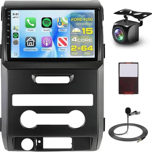 Radio de coche Android 15 especializada para Ford F150: la radio F150 diseñada para Ford F150 (2009-2012), este estéreo de coche con pantalla táctil HD IPS de 9 pulgadas funciona con el sistema Android 15, con 2 GB de RAM + 64 GB de ROM y un procesador de cuatro núcleos sensible para un rendimiento suave. Nota: Confirme el año de producción de su vehículo y el tamaño de la consola antes de comprar. ¿No estás seguro de la compatibilidad? Envíenos un mensaje para asistencia personalizada CarPlay inalámbrico y con cable, Android Auto y Mirror Link: este estéreo de coche con pantalla táctil F150 es compatible con CarPlay inalámbrico y con cable y Android Auto. Simplemente conecte su teléfono inteligente a través de la aplicación Zlink5 para acceder a sus aplicaciones móviles directamente en la pantalla estéreo, incluyendo Spotify, G00gle Maps y más. El estéreo F150 también ofrece funcionalidad de enlace de espejo: utiliza un cable de datos para transmitir la pantalla de tu teléfono en la radio del automóvil para una sincronización de contenido sin problemas Bluetooth 5.0 y radio FM/RDS: la unidad principal F150 2009 tiene el bluetooth, y le permite emparejar su teléfono sin esfuerzo para llamadas manos libres, transmisión de música inalámbrica y control de voz conveniente: mantenga su enfoque en el camino por delante. La radio FM/RDS cubre el rango de frecuencia de 87.5 a 107.5 MHz y puede guardar hasta 18 estaciones preestablecidas, para que puedas sintonizar tu música, noticias o actualizaciones de tráfico favoritas para cualquier momento y en cualquier lugar Cámara de visión trasera AHD y control del volante: el estéreo F150 2010 se empareja con la cámara trasera AHD de 1280 × 720 píxeles, impermeable y equipada con visión nocturna, para ofrecer vistas traseras nítidas y claras en la pantalla al retroceder. Elimina los puntos ciegos y estaciona de forma segura, incluso en condiciones de poca luz. También tiene control de volante, a través del botón de aprendizaje para que puedas tener un funcionamiento sin distracciones Navegación GPS y conectividad WiFi: radio Carplay F150 2011 equipada con GPS, este estéreo de coche F150 ha cargado con la aplicación de mapa, compatible con la navegación tanto en línea como fuera de línea para todos tus viajes. También puede descargar y usar cualquier otra aplicación de mapas de su elección. Conecte el estéreo a WiFi o al punto de acceso de su teléfono para navegar por Internet, descargar música, podcasts y otras aplicaciones, y mantener su entretenimiento en el automóvil fresco y actualizado