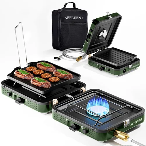 ¿Para qué sirve Estufa de camping portátil de propano de 2 quemadores de AFFLUENT con parrilla y bolsa de almacenamiento - ¡Una estufa de camping de propano?