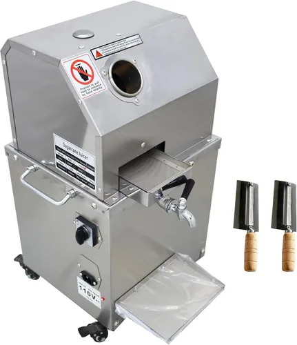 Tres rodillos de acero inoxidable: nuestro extractor de prensa de jugo de caña de azúcar de escritorio tiene tres rodillos de acero inoxidable, que pueden aplastar la caña para obtener un resultado muy perfecto. El ancho de los rodillos se puede ajustar automáticamente para mejorar la eficiencia del exprimidor. La productividad del exprimidor es de aproximadamente 661.4 lbs/h Fácil de limpiar: hay un orificio de inyección de agua para limpiar el exprimidor de caña de azúcar. La limpieza de la máquina es muy fácil. Solo necesita verter 2-3 vasos de agua y está listo. Para una limpieza adicional hay una perilla dada por encima de la entrada. Puede abrir y luego limpiar los rodillos con un cepillo Adecuado para una variedad de escenarios: además de la caña de azúcar, el exprimidor de caña de azúcar también puede exprimir jengibre, trozo de manzana y otras frutas y verduras. Y este exprimidor tiene una amplia gama de escenarios de aplicación. Adecuado para lugares con alto flujo de clientes como tiendas de té con leche, restaurantes, supermercados, cafeterías, cines, etc. Diseño de boca plana: la entrada de la máquina de prensa de jugo de caña de azúcar adopta un diseño plano. El diseño mejora el rendimiento de seguridad de la máquina exprimidora de caña de azúcar al tiempo que facilita la entrada de la caña de azúcar. El diámetro de la boca plana es de aproximadamente 2.441 in Precauciones de uso: antes de presionar, primero corta la raíz y la cabeza; diámetro de más de 1.181 in requiere romperse por la mitad; si la máquina está atascada con caña de azúcar, corta la energía inmediatamente y limpia la máquina; añade grasa al engranaje de transmisión cada semana; después de apretar terminado, debes lavar los rodillos a tiempo, asegúrate de que no se peguen en la caja de jugo y mantenla limpia; el material de los tres rodillos es de acero inoxidable. Pero en los más viejos para evitar el óxido, limpia después de su uso