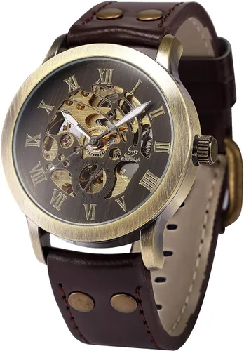 Pregunta sugerida sobre FANMIS Reloj de pulsera de cuero marrón mecánico automático de esqueleto de bronce steampunk para hombre, Marrón, Mecánico, Automático ¿Este producto sí me sirve para lo que necesito?