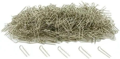 Esta es una nueva caja de 1000 pines en U de tono plateado A veces se les llama alfileres de exhibición o alfileres de joyería Se utiliza para sujetar joyas, especialmente cadenas en almohadillas de exhibición Cada uno mide aproximadamente 7/8" (22 mm) de largo