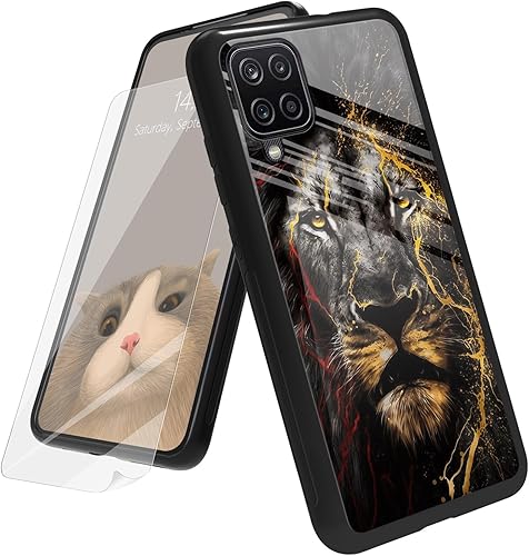 Funda para Samsung Galaxy A12 5G con protector de pantalla, parte trasera de vidrio templado + TPU de silicona suave que absorbe los golpes
