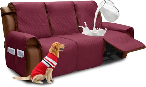 Funda reclinable resistente al agua, fundas para sofá reclinable de 3 asientos con bolsillos, funda protectora acolchada gruesa para perros