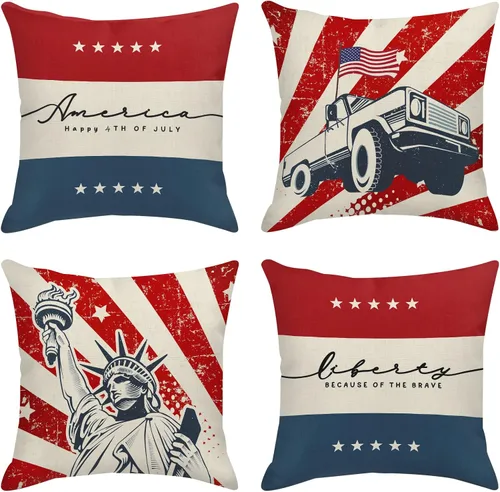 ArtSocket Juego de fundas de almohada decorativas para el Día 4 de Julio, Día de la Independencia, 18 x 18 pulgadas, decoración del hogar
