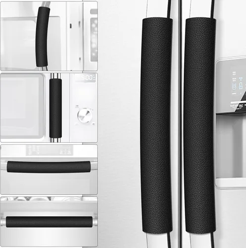 【Manténgalo realmente limpio】 ¡La piel sintética es el material perfecto para las cubiertas de los mangos! Las cubiertas para asas de cocina ven muchas manos sucias que pueden dejar todo tipo de cosas en ellas después de abrir y cerrar tus electrodomésticos. Nuestras fundas de mango de cuero no son absorbentes y se limpian fácilmente cuando se ensucian. Ahorro de tiempo y cómodas: nuestras fundas para manijas de electrodomésticos de cocina mantienen tu aparato de cocina limpio de manchas, goteo, manchas de alimentos, aceite, huellas dactilares, etc. ¡Para ahorrar tiempo en la cocina! También proporcionan un agarre cálido y suave para tus manos cada vez ¡Nunca vuelvas a tener un agarre helado! Ajuste personalizado y múltiples usos: juego de 6, 4 fundas de mango grande (14.6 pulgadas de largo) y 2 fundas de mango corto (7.9 pulgadas de largo / 6.3 pulgadas de largo). Nuestras cubiertas se pueden recortar para obtener un ajuste personalizado y se pueden usar en casi todas las anchuras de mangos, ¡sin necesidad de preocuparse por medir antes de comprar! Se pueden poner en múltiples electrodomésticos como nevera, microondas, horno, lavavajillas, armario de cocina, etc. 【Protección y decoración】El cuero sintético Royleath es duradero y lo suficientemente fuerte como para proteger tus asas, armarios y encimeras de abolladuras cuando tus puertas se abren La paleta de colores de tu cocina es una decisión de diseño importante y nuestras cubiertas de manijas ofrecen una gama de colores que pueden ser la decoración perfecta para la cocina y acentuar tu propio estilo. Decorativo y divertido 【Garantía y consejos】 Tu satisfacción con nuestro producto es importante para nosotros y ¡siempre estamos abiertos a sugerencias e ideas! Si tienes alguna pregunta, ponte en contacto con nosotros inmediatamente y trabajaremos para resolver tu problema. **Consejo** El cuero sintético, como el cuero normal, no debe lavarse a máquina.