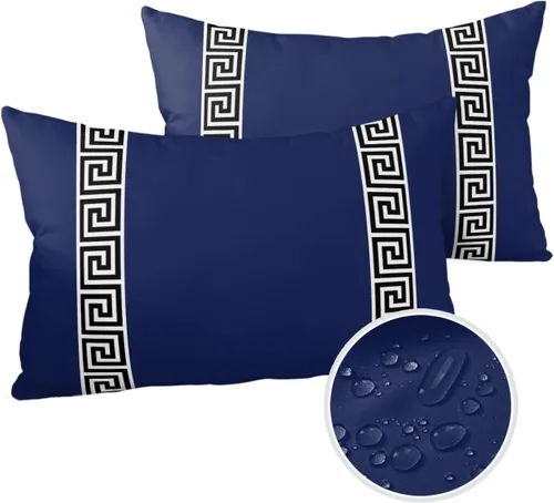 Funy Decor Juego de 2 fundas de almohada impermeables para exteriores, diseño geométrico de llave griega, juego de 2 fundas de almohada lumbares,