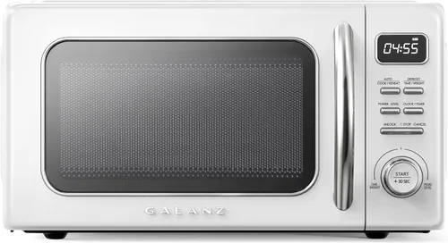 Descongelar y comenzar rápido: descongela cualquiera de tus alimentos congelados por peso o tiempo; también incluye un botón de inicio rápido, +30 segundos para cuando necesites tiempo de cocción adicional para tu comida Cocina y recalentamiento automático: incluye 7 programas de cocción automática y 10 programas de recalentamiento automático que hacen que cocinar y recalentar comidas y bebidas sea simple, rápido, fácil y conveniente Fácil de limpiar con mesa giratoria de cristal: extraíble para una fácil limpieza, incluye un plato giratorio de vidrio de 12.4 pulgadas que gira 360 grados para una cocción uniforme y eficiente Aspecto retro: aspecto vintage y retro acentuará cualquier espacio. Mezcla y combina con los otros electrodomésticos retro de Galanz como el horno tostador, congelador y piezas de refrigeración Ideal para espacios pequeños: el tamaño compacto es perfecto para apartamentos, cocinas pequeñas, dormitorios y otros espacios de cocina pequeños. Mide 21.1 pulgadas de ancho x 16.9 pulgadas de profundidad x 11.2 pulgadas de alto con una capacidad de 1.1 pies cúbicos