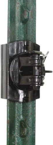 • Heavy-duty, Snap-On plastic insulators for steel posts Can be nailed to wooded posts or screwed to vinyl posts Pin lock allows for easy fence construction and wire removal