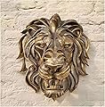 Decoración de pared grande con cabeza de león, escultura artística hecha a mano con cabeza de león, escultura de pared dorada de resina 3D para el