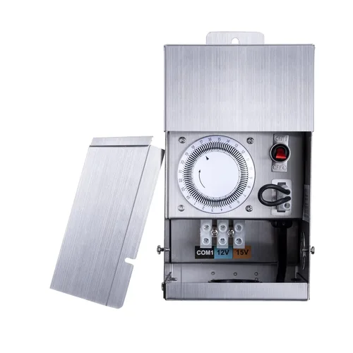 Gardenreet Transformador de bajo voltaje de 75 W con temporizador mecánico, multigrifo (120 V CA a 12 V/15 V CA) de acero inoxidable para