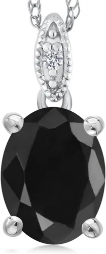 Gem Stone King Collar ovalado de oro blanco de 10 quilates con piedra natal y diamantes para mujer con cadena de oro de 18 pulgadas