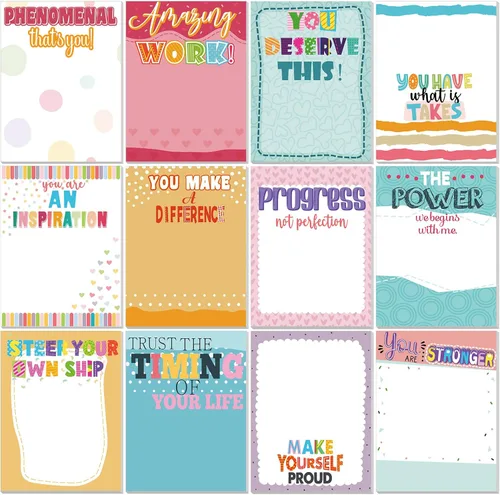 El paquete incluye: recibirás 12 diseños diferentes de blocs de notas empoderadores, 30 hojas de cada nota, 360 hojas en total; cantidad suficiente para satisfacer tus necesidades y satisfacer tus necesidades; también puedes compartirlos con tus amigos y colegas Diseño significativo: cada página de notas adhesivas motivacionales para educadores está impresa con palabras positivas y alentadoras para darte una perspectiva optimista de la vida; las divertidas notas autoadhesivas se adoptan en diferentes colores vibrantes y son estéticamente agradables Material adecuado con tamaño portátil: el bloc de notas inspirador está hecho de papel de alto impacto, lo que te proporciona una superficie lisa para escribir fácilmente y se puede fijar a cualquier superficie limpia y plana; cada bloc de notas mide aproximadamente 2.95 x 3.94 pulgadas. Esta nota adhesiva de aliento es suficiente para que escribas muchas cosas Amplia aplicación: los coloridos blocs de notas inspiradores se pueden implementar para escribir notas, planes de trabajo, tareas de estudio, listas de compras, listas de tareas, etc. Son artículos indispensables para estudiantes, profesores y trabajadores para aplicar en escuelas, oficinas y hogares Fácil de usar: las notas adhesivas modernas y divertidas tienen un diseño autoadhesivo con elemento adhesivo de alto impacto y se pueden aplicar fácilmente a muchas superficies lisas y limpias como libros, ventanas, puertas, neveras, armarios, escritorios, tablas de dibujo, etc. Es fácil de quitar sin dejar residuos pegajosos