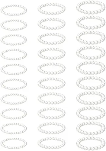 Glenmal 30 pulseras de perlas para mujer, para boda, a granel, pulsera de perlas de imitación para novia, pulsera elástica elástica para damas de