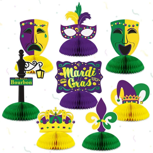 Pregunta sugerida sobre 8 piezas de Mardi Gras - Centro de mesa de panal de abejas para decoración de fiesta de Mardi Gras, decoración del hogar ¿Este producto sí me sirve para lo que necesito?