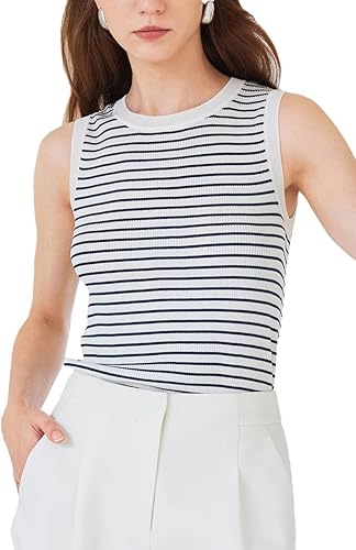 GOELIA Camisetas sin mangas de verano para mujer, estilo casual, sin mangas, cuello corazón, ajustadas, básicas, para salir, camisetas de punto