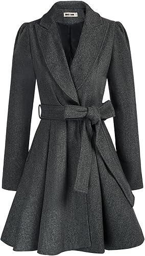 GRACE KARIN Abrigo de manga larga abombada con solapa de muesca para mujer con cinturón de amarre