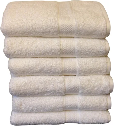 Grandeur toallas de baño de hospitalidad - paquete de 6 (blancas). 6 toallas de baño grandes de 30 x 56 pulgadas. Duradero, ligero, altamente absorbente y se seca rápidamente. Toallas de baño grandes 100% algodón lujosamente suaves.