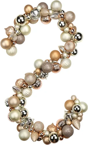 CARACTERÍSTICAS DEL PRODUCTO: Una apariencia sobresaliente de la guirnalda de bolas de Navidad, la disposición irregular de 129 bolas coloridas muestra que es más única, puedes colocarla en cualquier forma. Hay 4 colores, tres tamaños y 4 tipos de bolas incluidas: bolas brillantes, bolas mate, bolas de purpurina y bolas con forma. Con 15 estilos diferentes de adornos de Navidad para elegir. MATERIALES PREMIUM: Hechas de material de plástico PE de calidad para proporcionar un excelente rendimiento a prueba de roturas, la durabilidad es mucho mayor que otros productos de PVC. Es hipoalergénico para la mayoría de las personas, es una decoración segura en el hogar. Por favor, ten en cuenta la posible caída del polvo dorado al tacto Decoración brillante: nuestros adornos navideños combinan la belleza y el brillo del vidrio real con la practicidad irrompible del material. El diseño único y los materiales hacen que esta guirnalda se vea muy brillante y luminosa. Impresionará a las personas y combinará con la mayoría de tus decoraciones navideñas MÁS OPCIONES: Tenemos un conjunto de productos navideños coloridos que incluyen coronas, guirnaldas, árboles de bolas para que combinen, ¡es una combinación perfecta! Consulta la parte de descripción para verla y cómprala juntos, para decorar tu hogar a la vez OCASIONES MÁS ADECUADAS: Es un buen artículo de decoración interior y exterior para Navidad o regalo para otros, también puede ser un buen complemento para la decoración de cumpleaños y festivales. Se puede colgar bien para que sea adecuado para ponerlo en la puerta principal, la repisa y la chimenea, o en el jardín al aire libre.