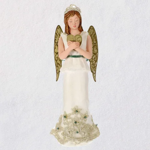 Este adorno navideño de amor cuenta con un ángel divino que cierra un corazón. El vestido blanco brilla con tela y ribete de apliques. Alas de metal. El adorno para árbol de Navidad es el segundo en la serie de coleccionistas de Christmas Angels. Artista elaborado por Joanne Eschrich, este adorno para árbol de Navidad cuenta con detalles de tela y metal. Pre-empaquetado en una caja para un fácil regalo, conservación y almacenamiento. Fechado 2019 en derechos de autor. Sobre el adorno: (base) El amor sea... tu fuerza, tu comodidad, tu alegría. Con un arte inigualable y detalles excepcionales, cada adorno festivo y coleccionable de recuerdo está hecho para años de celebraciones. Desde preservar recuerdos preciosos hasta conmemorar hitos e intereses especiales, hay un adorno de Hallmark para todos en tu lista de regalos. El adorno de plástico para árbol de Navidad no contiene plomo y mide 1. 92 pulgadas de ancho x 5. 48 pulgadas de alto x 2. 38 pulgadas de profundidad.