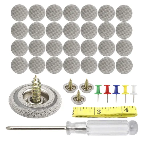 Remaches universales para reparación de techo de coche: 60 remaches de reparación a prueba de coche, botón de reparación de techo para techo interior, hebilla de reparación de techo para todos los coches. Material duradero: está hecho de tela de rejilla, el color es claro y se puede combinar con una variedad de interiores de automóviles. Con revestimiento especial que evita que los remaches se oxiden. Ahorro de dinero: Este kit de reparación de techo de automóvil lo ayudará a ahorrar dinero para que pueda reparar el automóvil en casa. No toma mucho tiempo ni herramientas profesionales. Operación simple: Puedes ponerlos en el techo de tu coche, muy fáciles de operar y harán que el interior de tu coche se vea espacioso y no más techo flácido. El paquete incluye: 60 hebillas para techo de coche, 60 chinchetas coloridas, 1 destornillador y 1 cinta métrica. No necesita otras herramientas y no romperá el vehículo original.